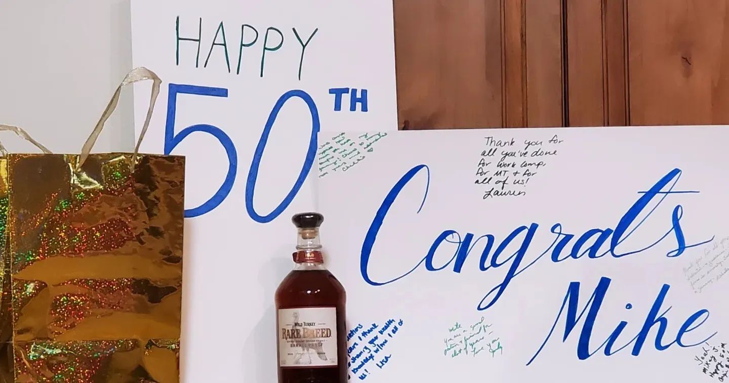 The company honored Michael on June 14, 2024 for his dedication to the profession and the many people that he has impacted. His daughter Lauren Marsh presented a bottle of Michael's favorite, Wild Turkey Reserve along with cards from many individuals. She gave the following short presentation (edited for brevity):